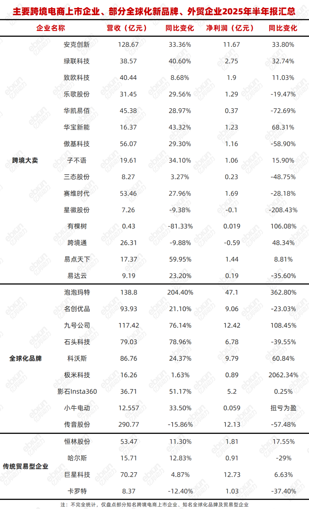 波云诡谲的环境里,更考验玩家们穿越周期的能力。前不久,跨境电商主要上市企业接连发布财报。有人欢喜有人愁:以泡泡玛特、九号公司为代表的全球化品牌营收、净利暴涨,安克、绿联、华宝新能等从海外起家的主要跨境品牌也保持了30%左右的营收增速;而傲基、三态股份等以铺货为主的玩家,却因关税受损严重,净利腰斩。但总的来说,玩家们都有自己的办法“八仙过海”,保住了上半年的营收。