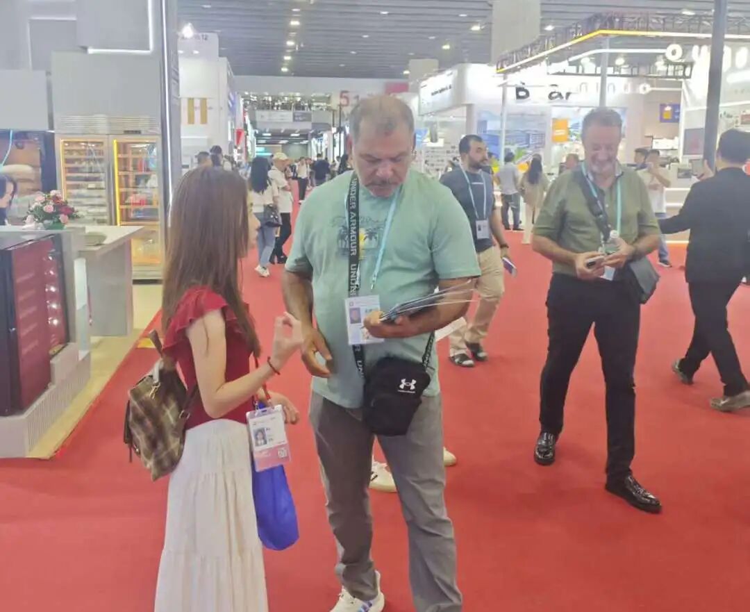 团队的努力收获了积极回应,众多海外采购商对广州跨交会表现出浓厚兴趣。其中,来自英国、墨西哥、泰国、马来西亚、印度、埃及等国家的采购商,在收到宣传资料后,纷纷驻足与工作人员深入交流,仔细咨询广州跨交会的展会详情,包括参展细节、产业带特色以及平台服务等方面的信息,一些采购商还主动留下自己的名片,希望能通过广州跨交会挖掘更多合作契机,进一步拓展自身业务版图。